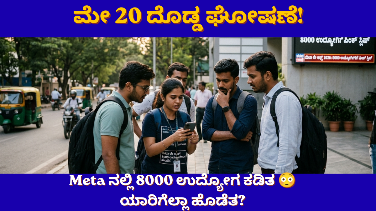 Meta layoffs 2026 ಸುದ್ದಿ ಟೆಕ್ ಕ್ಷೇತ್ರದಲ್ಲಿ ದೊಡ್ಡ ಚರ್ಚೆಗೆ ಕಾರಣವಾಗಿದೆ. ಮೇ 20ರಂದು ಮಹತ್ವದ ಘೋಷಣೆ ಮಾಡುವ ಸಾಧ್ಯತೆ ಇರುವ ಹಿನ್ನೆಲೆ, ಸುಮಾರು 8,000 ಉದ್ಯೋಗಿಗಳಿಗೆ ಪಿಂಕ್ ಸ್ಲಿಪ್ ನೀಡಲಾಗಬಹುದು ಎಂಬ ವರದಿಗಳು ಹೊರಬಿದ್ದಿವೆ. ವೆಚ್ಚ ಕಡಿತ ಮತ್ತು AI ಮೇಲೆ ಹೆಚ್ಚಿನ ಗಮನ ನೀಡುತ್ತಿರುವ ಮೆಟಾ ಕಂಪನಿಯ ಈ ನಿರ್ಧಾರ ಉದ್ಯೋಗಿಗಳಲ್ಲಿ ಆತಂಕ ಹೆಚ್ಚಿಸಿದೆ.